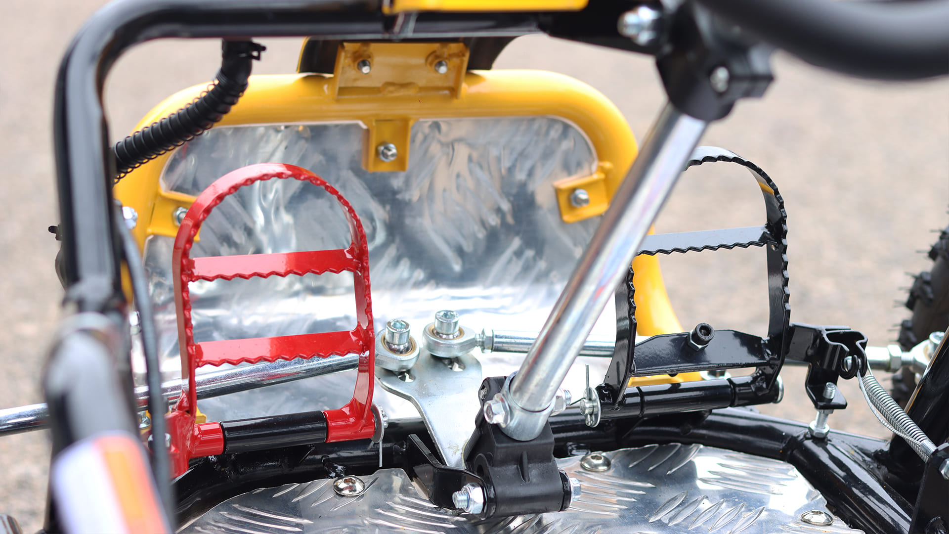Zahvaljujući stabilnoj konstrukciji i zadnjoj disk kočnici, ovaj model pruža potrebnu sigurnost i kontrolu pri svakom zaustavljanju. Lančani pogon i gume dimenzija 13×5-6 osiguravaju stabilnost i dobro prianjanje na različitim terenima, uz maksimalnu brzinu ograničenu na sigurnih 25 km/h.