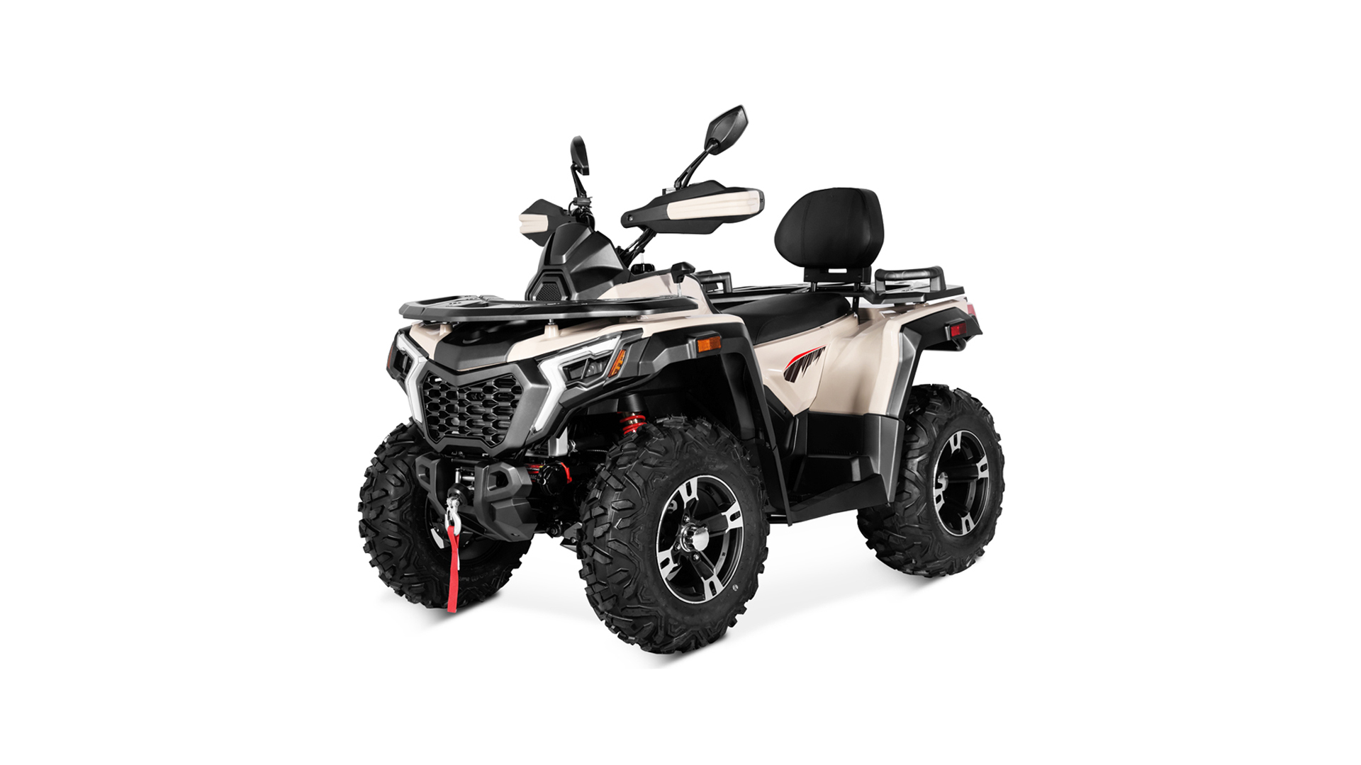 Moderan i robustan dizajn, u kombinaciji s udobnim sjedištem visine 850 mm i kvalitetnim ogibljenjem, pruža sigurnu i stabilnu vožnju. Prednje i zadnje LED svjetlo te disk kočnice na oba točka osiguravaju sigurnost i dobru vidljivost u svim uvjetima. RANGER 400 dolazi s prednjim i zadnjim nosačima, što omogućava praktičnu upotrebu i nošenje dodatne opreme, idealno za avanture ili radne zadatke.